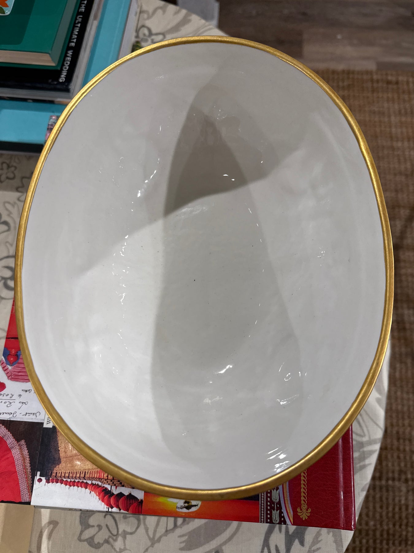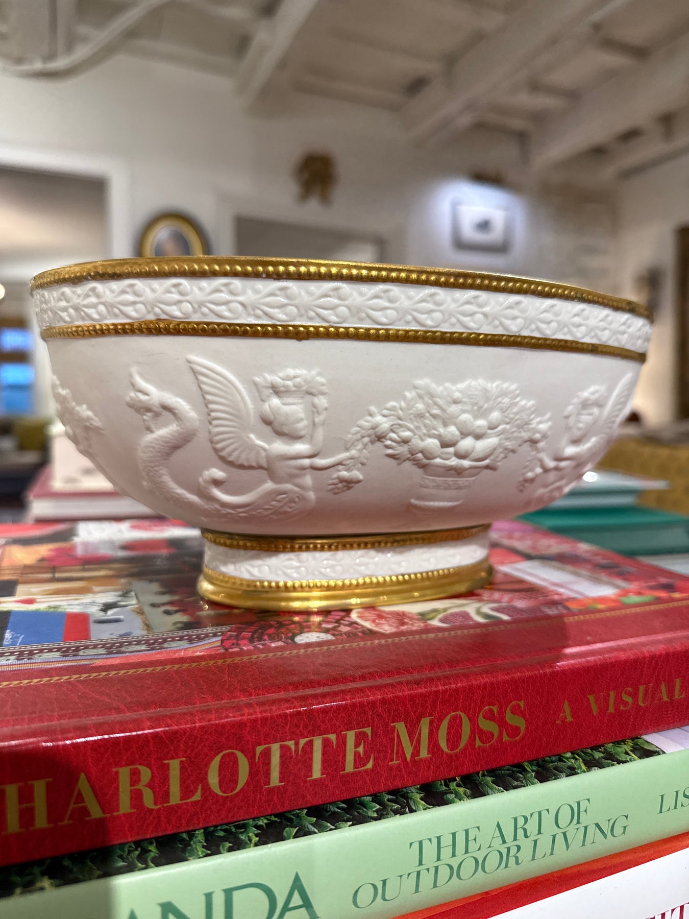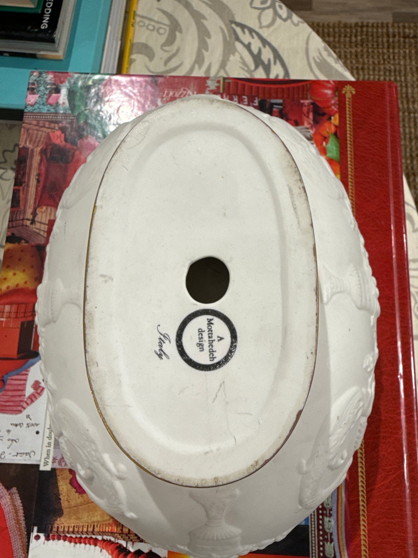 Mottahedeh has long been known for their heirloom quality museum reproductions, and this oval bowl is indicative of that craftsmanship. How lovely is this bisque porcelain bowl with its reliefs of mystical sea creatures. In excellent vintage condition without chips or cracks and measures 9.5" x 7" x 4.25" high.